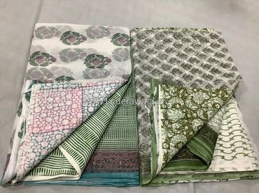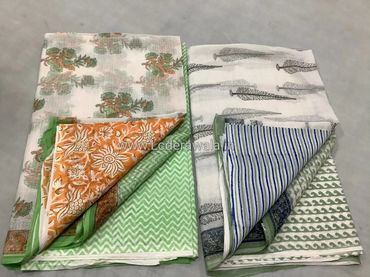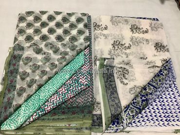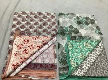 TOP: Length 2.75 meters , Width 45 inch Hand Block Printed Kota Cotton Fabric